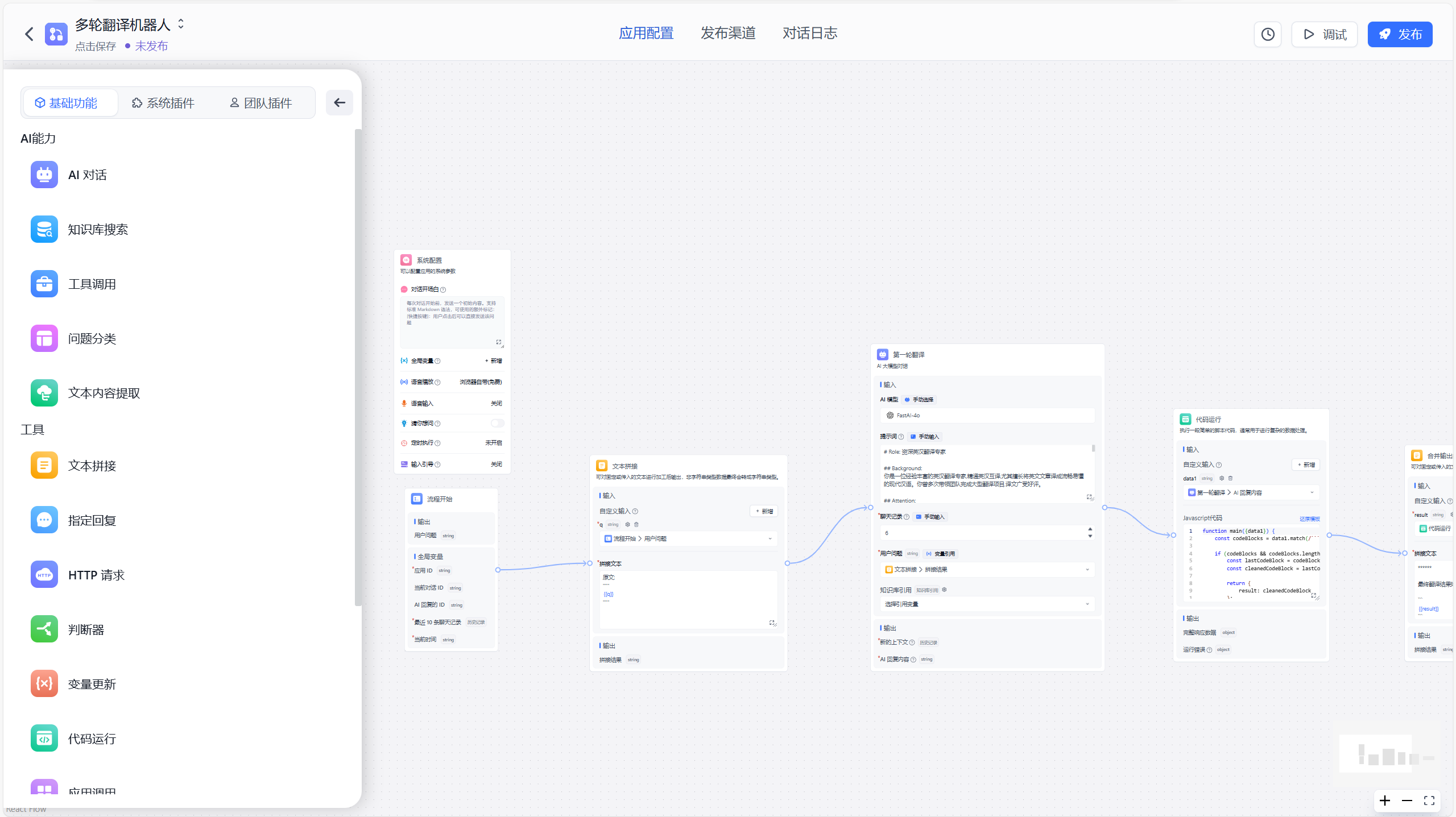 | Application Orchestration Features | ✅ Offers a straightforward mode, eliminating the need for complex orchestration ✅ Provides clear next-step instructions in dialogues ✅ Facilitates workflow orchestration ✅ Tracks references in source files ✅ Encapsulates modules for enhanced reuse at multiple levels ✅ Combines search and reordering functions 🔜 Includes a tool module 🔜 Integrates Laf for online HTTP module creation 🔜 Plugin encapsulation capabilities |